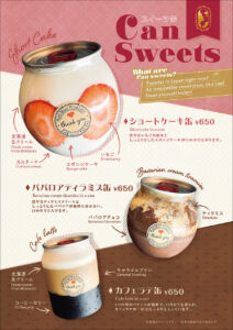 濃厚ないちごの風味としっとりしたスポンジケーキのショートケーキ缶。濃厚なティラミスクリームとババロアが絶妙に絡み合ったババロアティラミス缶。3つの層のバランスが絶妙で口当たり滑らかなカフェラテ缶。どれも絶品のスイーツ缶です。