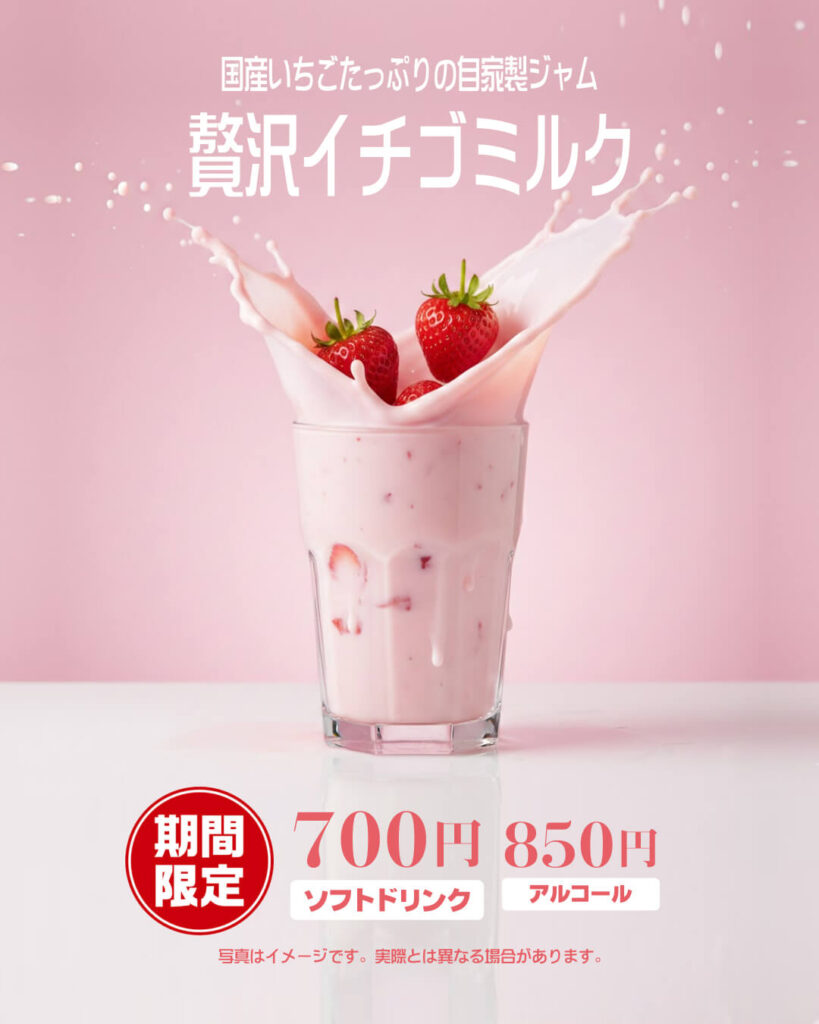国産いちごの自家製ジャムを使用した贅沢ないちごみるく