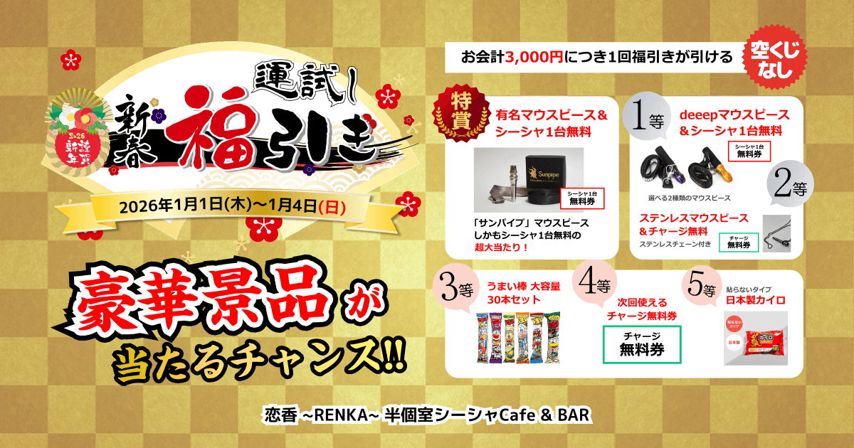 多くの方々に「恋香(RENKA)半個室シーシャカフェ」をご愛用いただけるよう従業員一同心より御礼申し上げます。